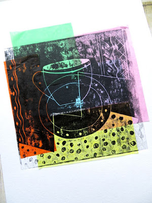 To add colour I printed it onto pieces tissue paper...a process called Chine Colle